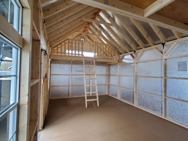 Upgrades: Lofts on both sides, hinged ladder and railings for one loft, 4x20 overhang, transom windows above regular windows